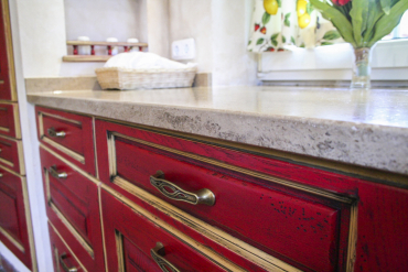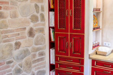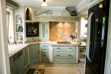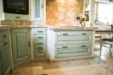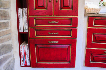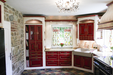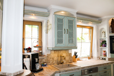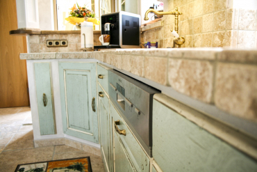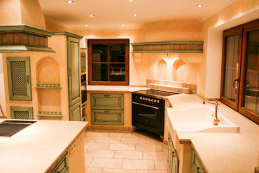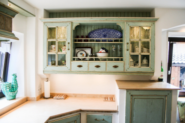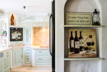 Das Modell Avignon besticht durch die breiten Rahmen und die üppige Füllung, die der Küche im Toskana Stil ein besonders opulentes und beeindruckendes Aussehen verleiht. Dabei verwenden wir sehr stabiles Hartholz (vorwiegend Eiche), das mit Rissen, Kerben und Wurmlöchern durchsetzt ist. Betont wird das wunderschöne Antikfinish durch die passende farbliche Gestaltung.