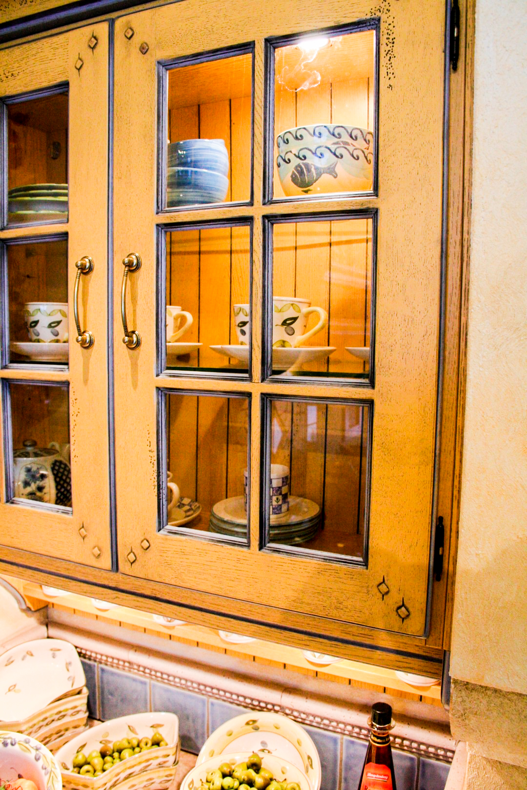 Das Modell Toskana ist proportional mit der „Provence“ identisch. Ausnahmen sind Stangenscharniere an den Türen und abgestärkte Fronten, womit sämtliche Korpuskanten sichtbar bleiben. Dieser Effekt ähnelt mehr einem Möbelstück als einer Küche und ist der wesentliche Unterschied zum Modell „Provence“.