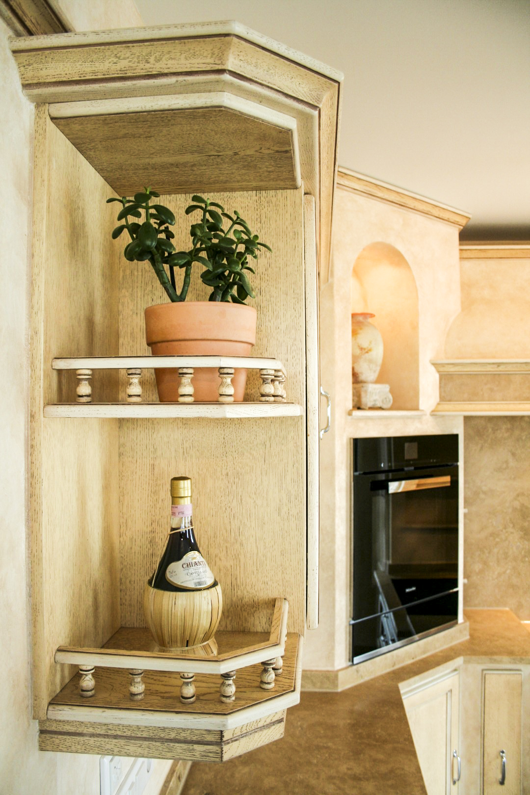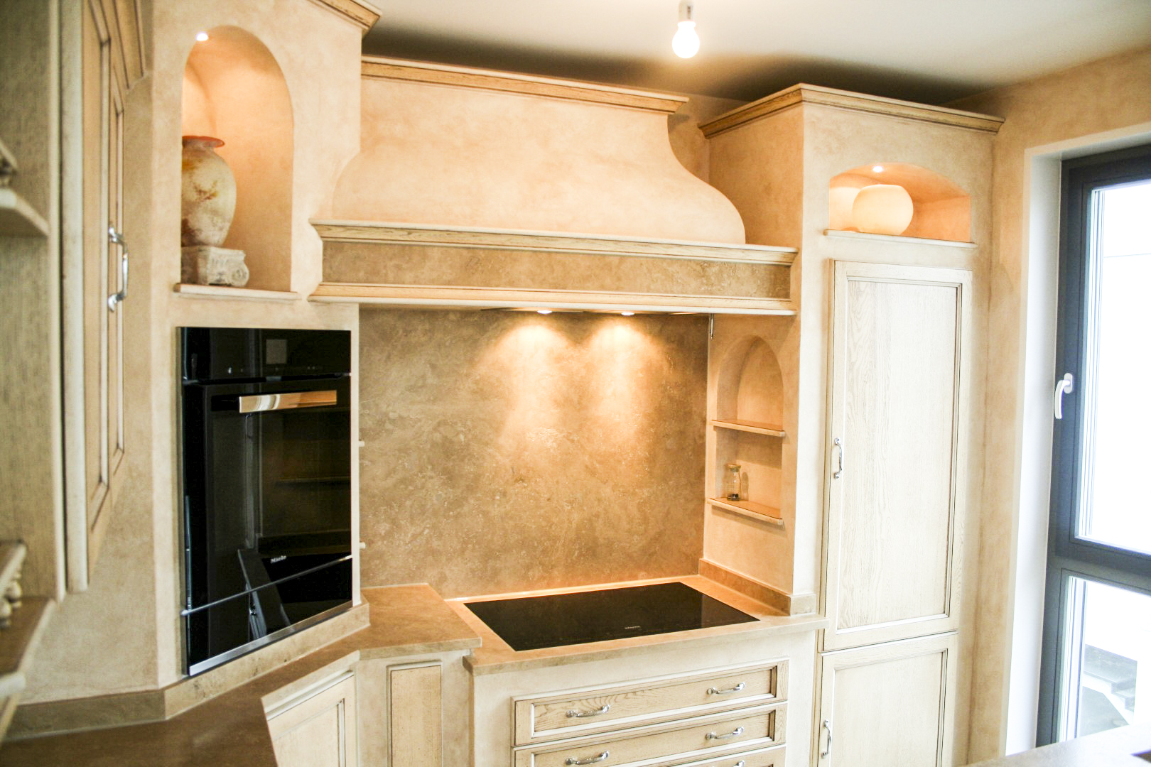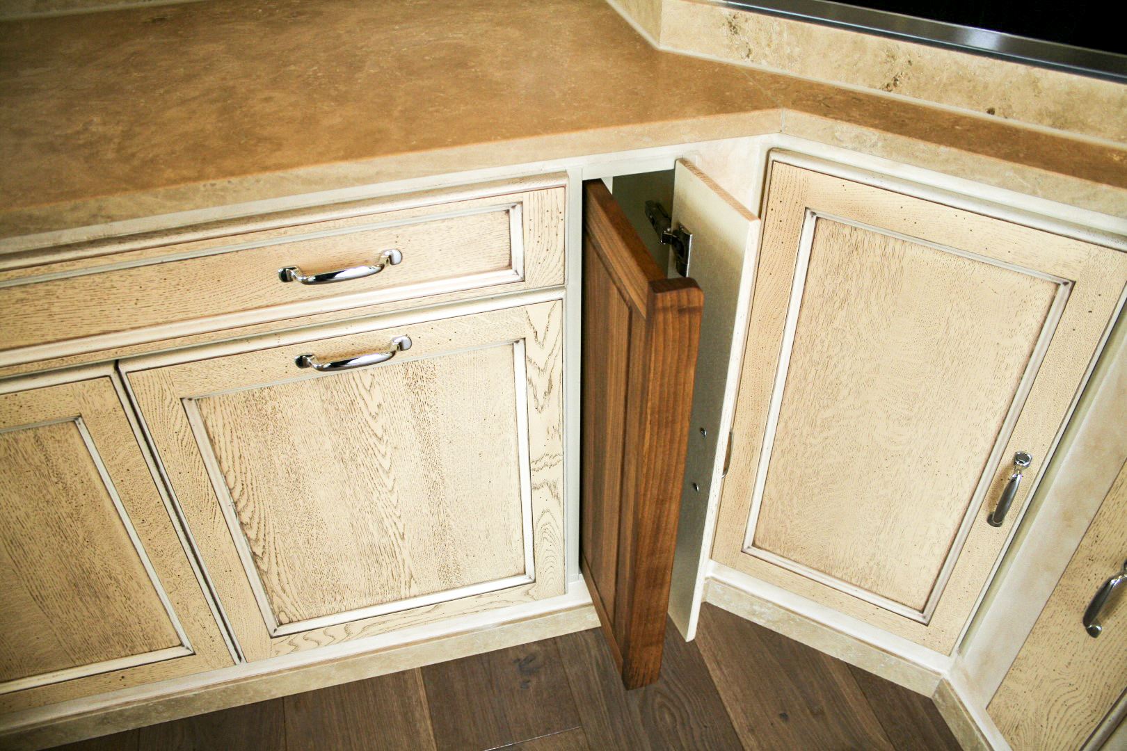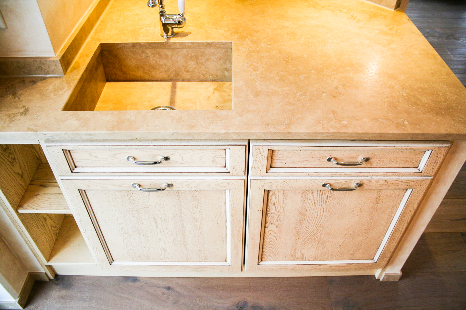 Wir empfehlen für die französische Kücheneinrichtung Eichenholz. Grundsätzlich ist das Holz glatt und schlicht, kann aber je nach Wunsch bearbeitet und verziert werden.